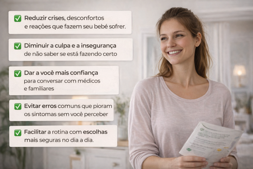 O Descomplicando a Aplv é um guia cuidadosamente desenvolvido para ajudar mães a entenderem a alergia do bebê, aumentar a segurança nas decisões do dia a dia e transformar a rotina de cuidado em uma experiência mais tranquila e confiante. Não é apenas mais um material cheio de teoria — é um passo a passo prático que realmente ajuda você a agir com mais clareza e evitar erros comuns.
