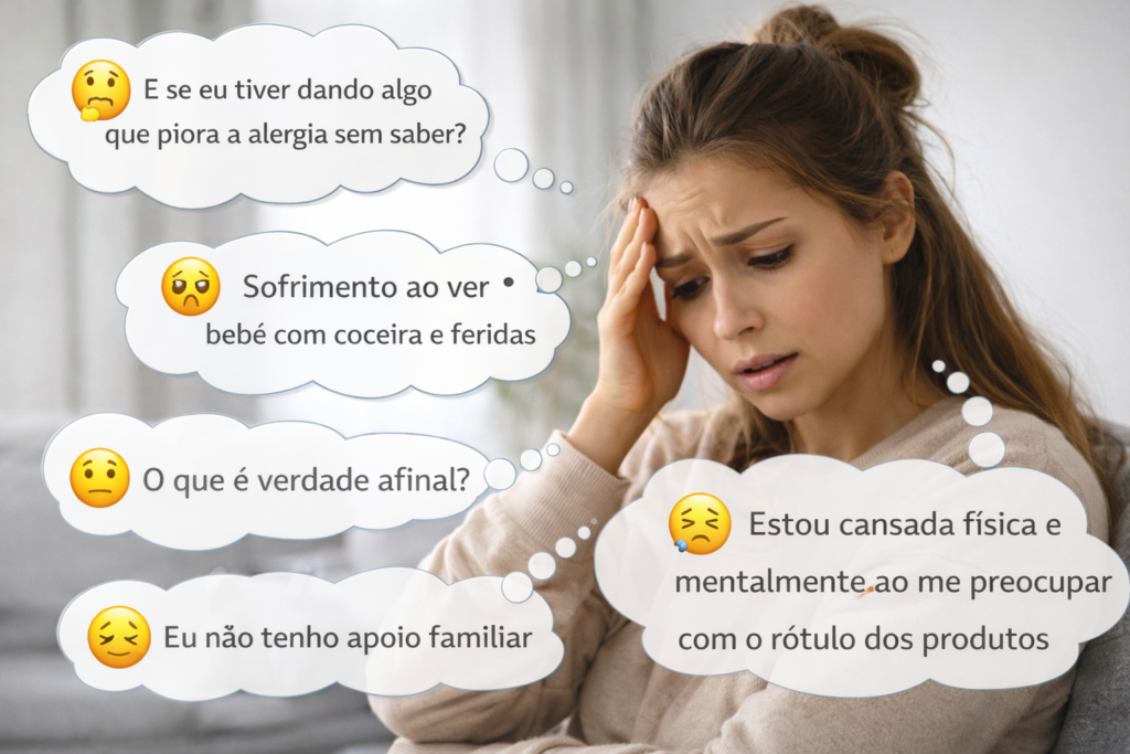 Ela me indicou uma alergista em uma cidade vizinha, a Dra. Fátima Botelho. Levei minha filha, fizemos os testes… e ali veio o diagnóstico: *APLV — Alergia à Proteína do Leite de Vaca.*